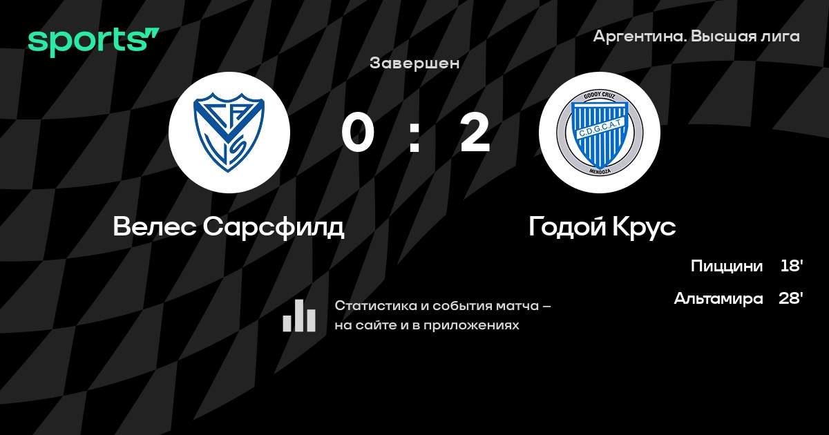Велес Сарсфилд – Годой Крус: Велес Сарсфилд не проигрывает в 9 последних матчах против этого соперника