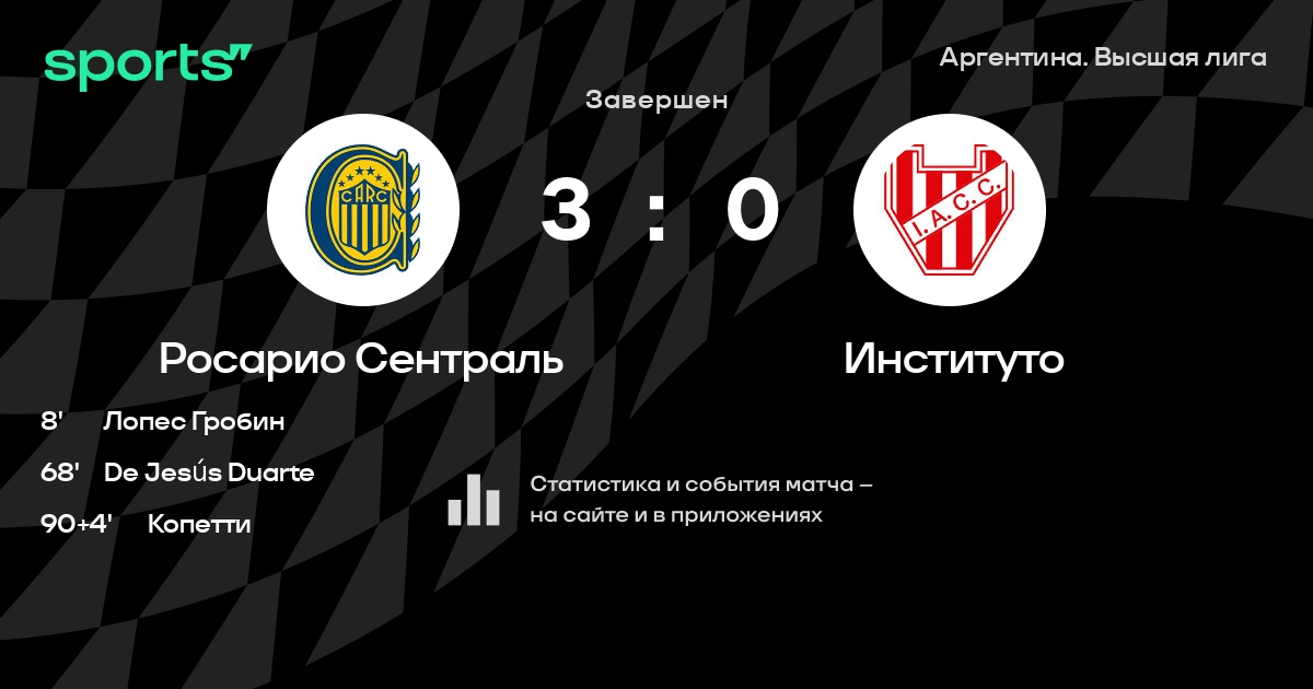 Росарио Сентраль – Институто: Росарио Сентраль не пропускает в 3 последних матчах против этого соперника