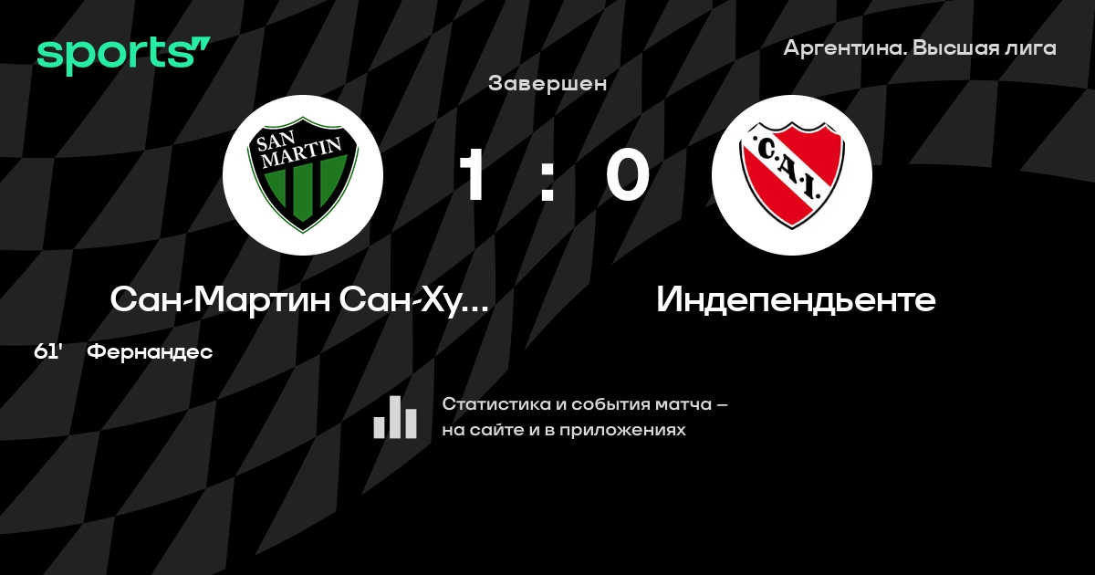 Сан-Мартин Сан-Хуан – Индепендьенте: Индепендьенте не проигрывает в 9 последних матчах против этого соперника
