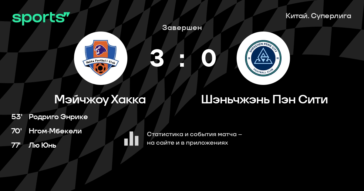 Мэйчжоу Хакка – Шэньчжэнь Пэн Сити: Шэньчжэнь Пэн Сити не пропускает в 3 последних матчах против этого соперника