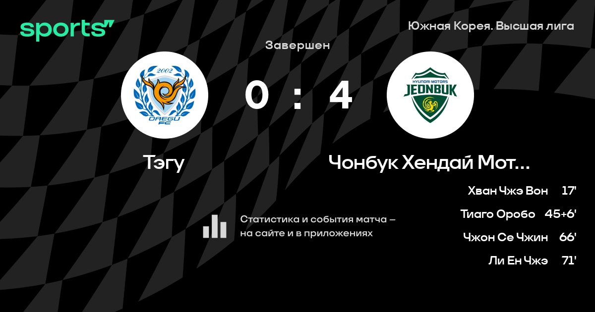 Тэгу – Чонбук Хендай Моторс: Чонбук Хендай Моторс забивает в 3 последних матчах против этого соперника