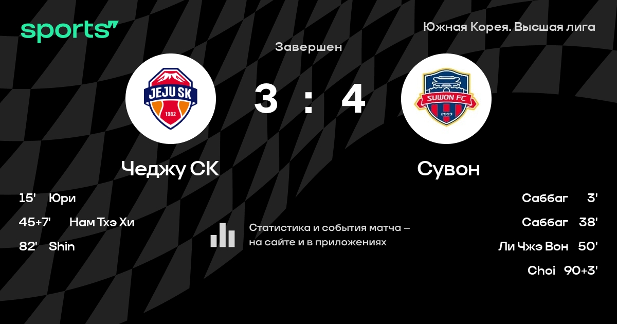 Результат прошлой игры в турнире «Высшая лига»: Пхохан Стилерс – Чеджу СК 1:0. После 30 туров Чеджу СК набирает 31 очков и занимает 11 место в турнире. Лучший бомбардир команды – Юри: он забил 8 в 25 матчах. Чеджу СК проигрывает в 3 последних матчах в рамках турнира «Высшая лига». Чеджу СК пропускает в 4 последних матчах в турнире «Высшая лига». В последних 5 играх Чеджу СК забивает 3 голов. В последних 5 играх Чеджу СК пропускает 6 голов.