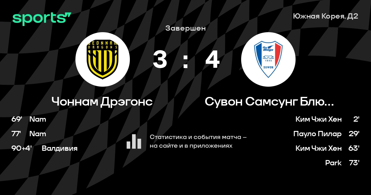 Чоннам Дрэгонс – Сувон Самсунг Блювингс: Чоннам Дрэгонс забивает в 5 последних матчах против этого соперника