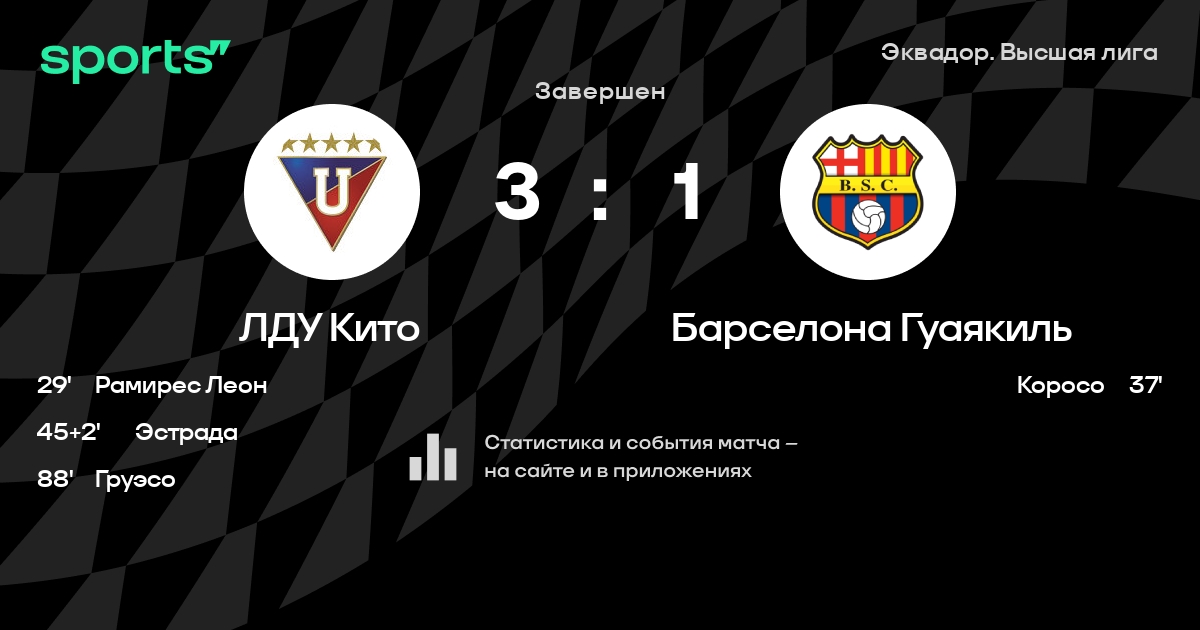 Трансляция ЛДУ Кито - Барселона Гуаякиль