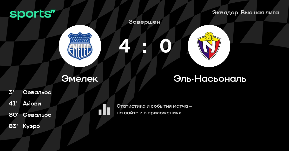 Ортис - Родригес, Diogo Osmar Bagüí Tobar, Леон, Кайседо - Руис, Севальос, Кинтеро, Гонсалес - Айови, СолисЗапасные: Валеро, Киньонес, Caicedo Valencia, Барко, Muñoz Calderón, Borja Robalino, Гарсес, Valverde Rodríguez, Lara Acosta, Palma Caicedo, Куэро, Коросо