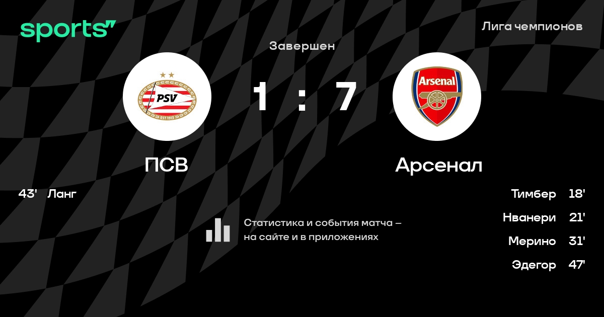 ПСВ – Арсенал: Арсенал не проигрывает в 7 из 8 последних матчей против этого соперника в турнире «Лига чемпионов»