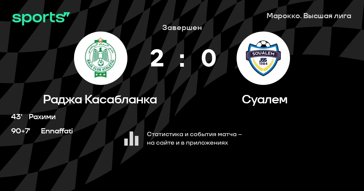 Раджа Касабланка – JS Soualem: Раджа Касабланка не проигрывает в 6 из 7 последних матчей против этого соперника