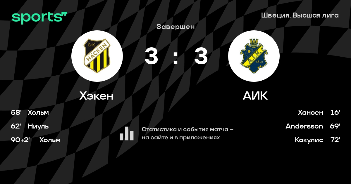 Хэкен – АИК: Хэкен побеждает в 6 последних очных матчах