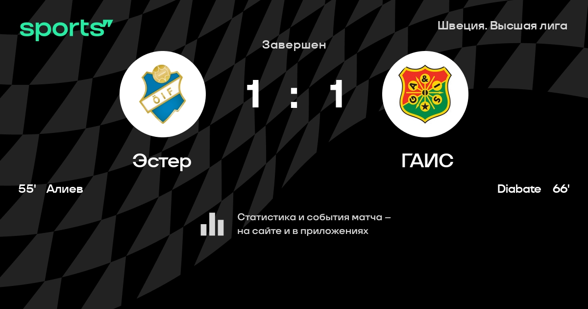 Эстер – ГАИС: Эстер забивает в 12 из 14 последних матчей против этого соперника