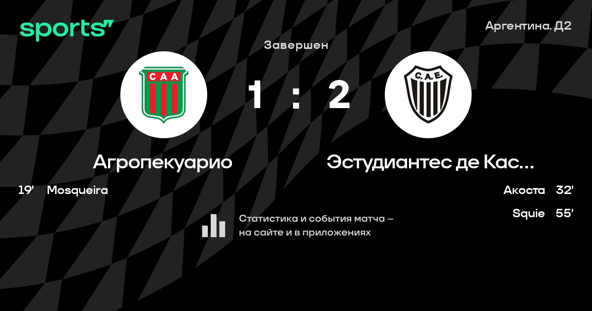 Результат прошлой игры в турнире «Примера B Насьональ»: Депортиво Морон – Агропекуарио 1:1. После 22 туров Агропекуарио набирает 31 очков и занимает 9 место в турнире. Лучший бомбардир команды – Алехандро Гальярди: он забил 11 в 19 матчах. Агропекуарио не проигрывает в 4 последних матчах в рамках турнира «Примера B Насьональ». В 4 последних матчах в турнире «Примера B Насьональ» Агропекуарио обязательно забивает. Агропекуарио пропускает в 6 последних матчах в турнире «Примера B Насьональ». В последних 5 играх Агропекуарио забивает 5 голов. В последних 5 играх Агропекуарио пропускает 7 голов.