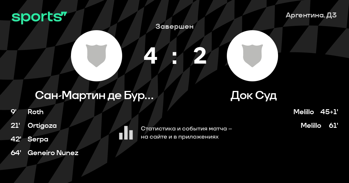 Сан-Мартин де Бурсако - Док Суд: положение в турнире