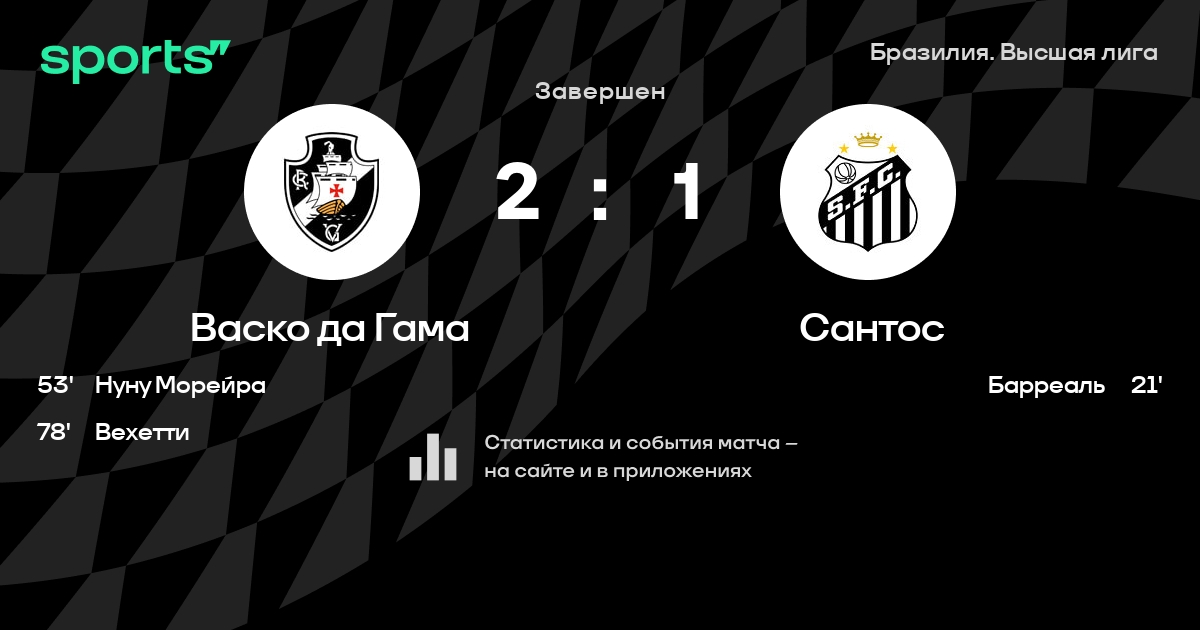 Васко да Гама – Сантос: Сантос не проигрывает в 5 из 7 последних матчей против этого соперника