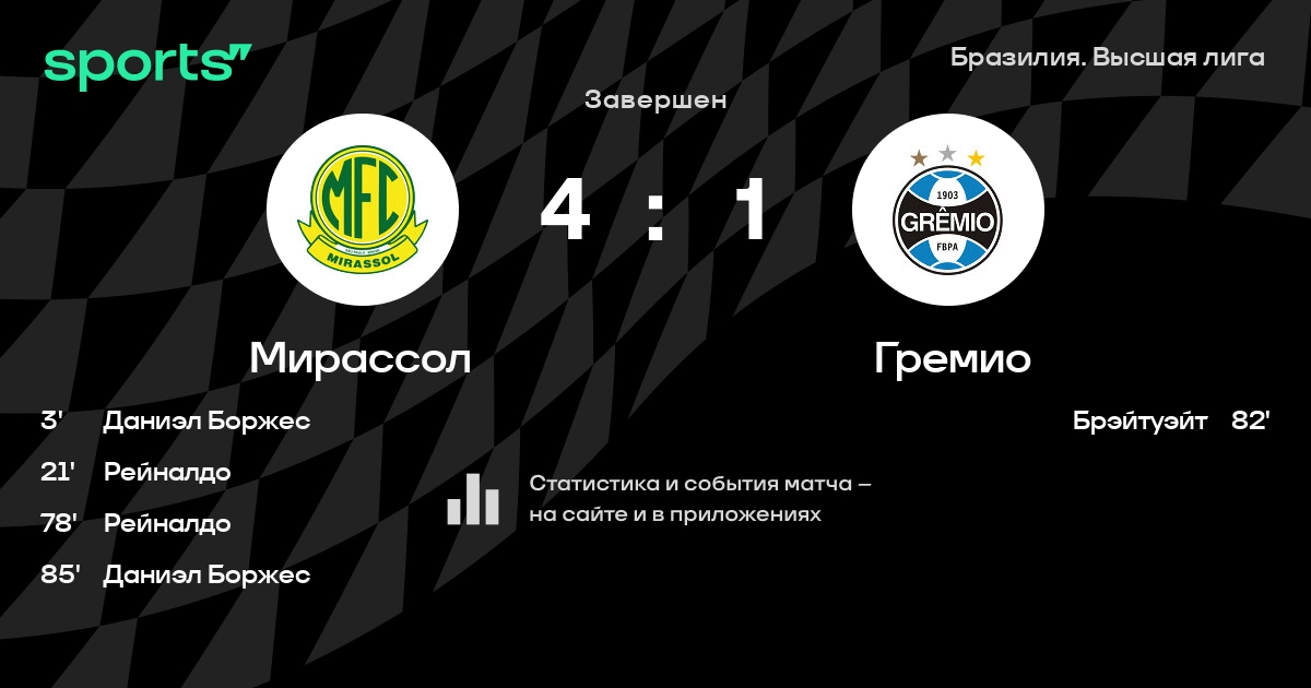 В последних 5 играх Мирассол забивает в среднем 1.00 гола за игру