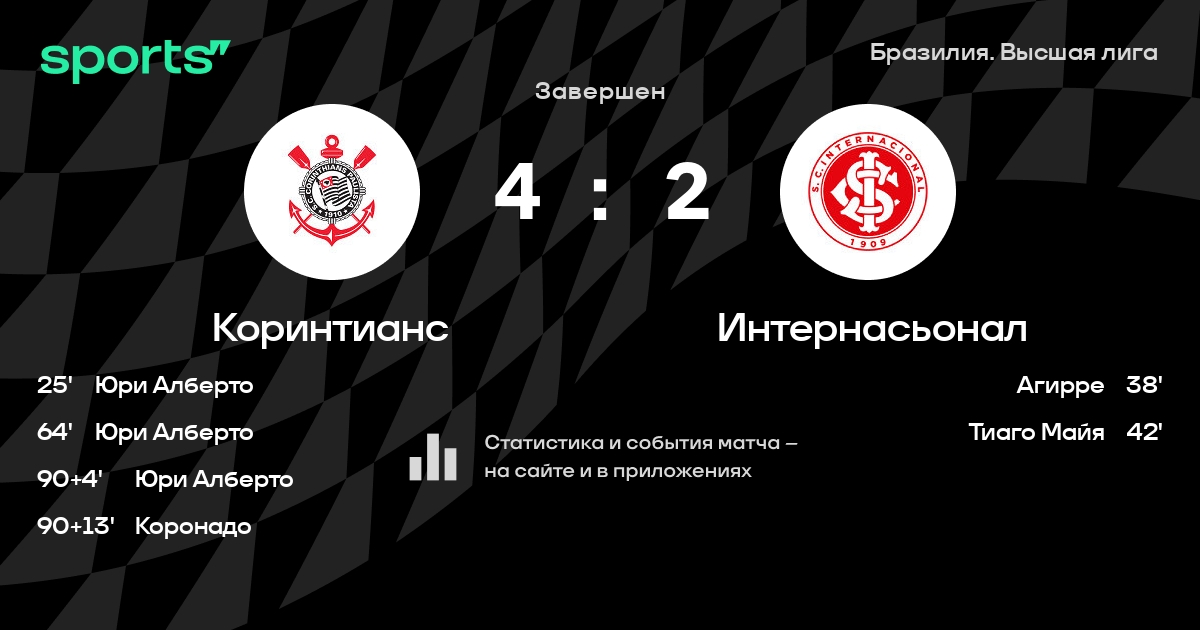 Коринтианс – Интернасьонал: Интернасьонал не проигрывает в 9 последних матчах против этого соперника