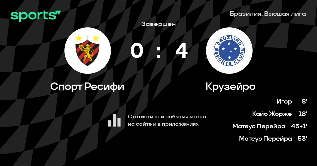 Спорт Ресифи – Крузейро: Крузейро не проигрывает в 6 из 8 последних матчей против этого соперника