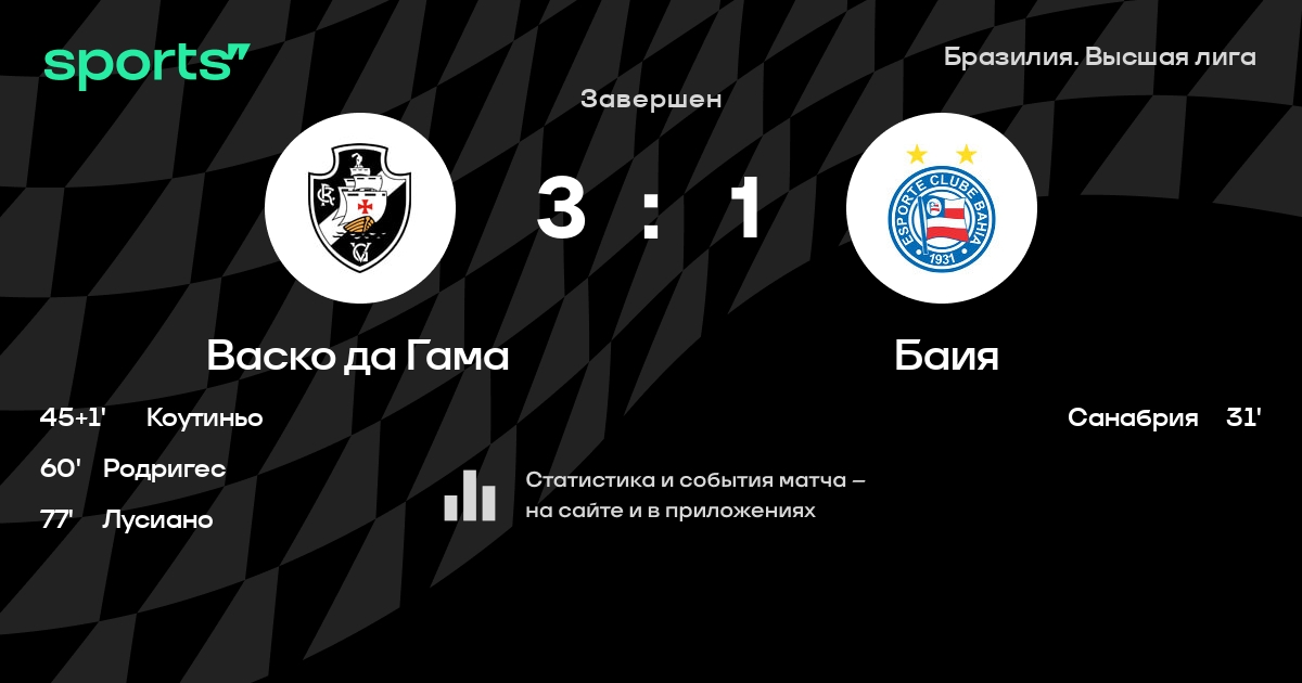 Васко да Гама – Баия: Баия не проигрывает в 7 из 9 последних матчей против этого соперника в турнире «Серия A»