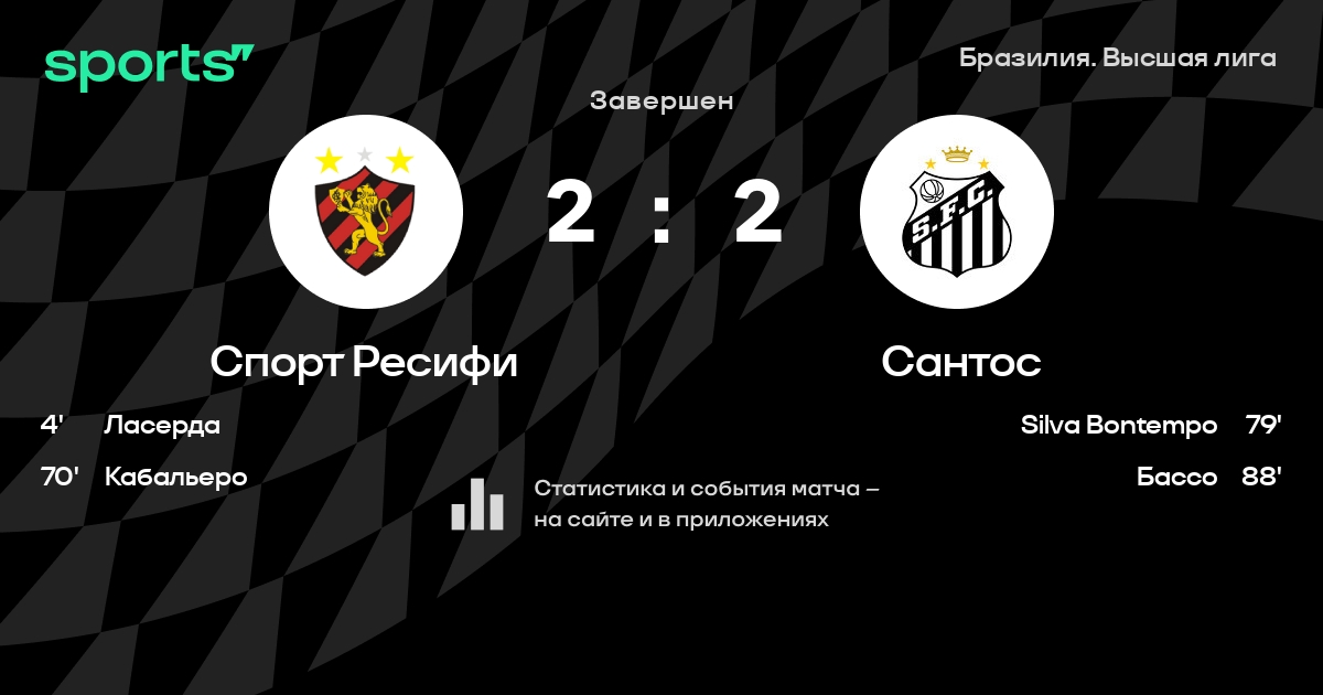 Спорт Ресифи – Сантос: Сантос не проигрывает в 5 из 7 последних матчей против этого соперника