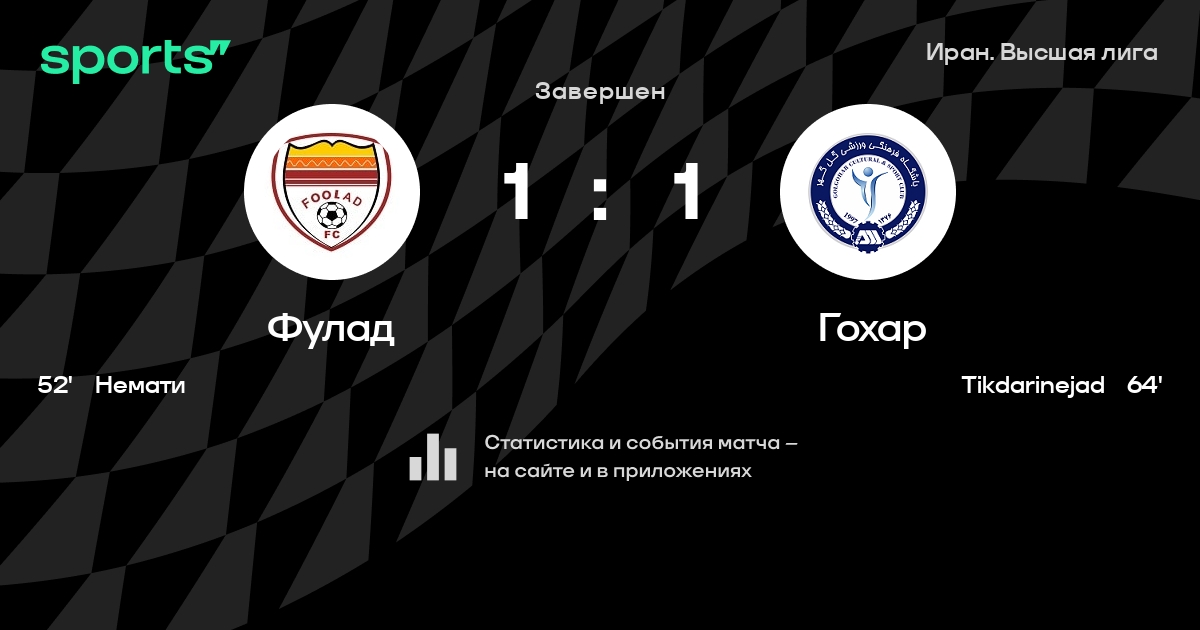 Фулад – Гохар: Гохар забивает в 5 из 7 последних матчей против этого соперника