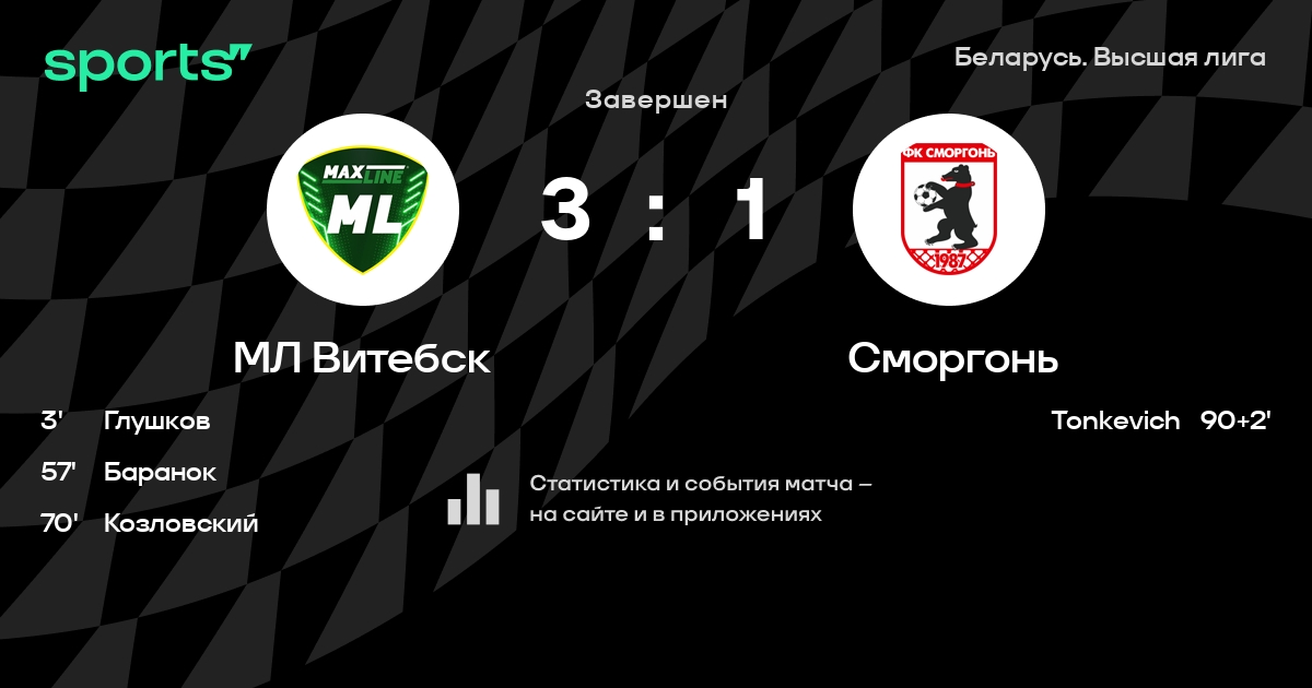| 1 | МЛ Витебск | 30 | 21 | 5 | 4 | 53 | 18 | +35 | 68 | ||