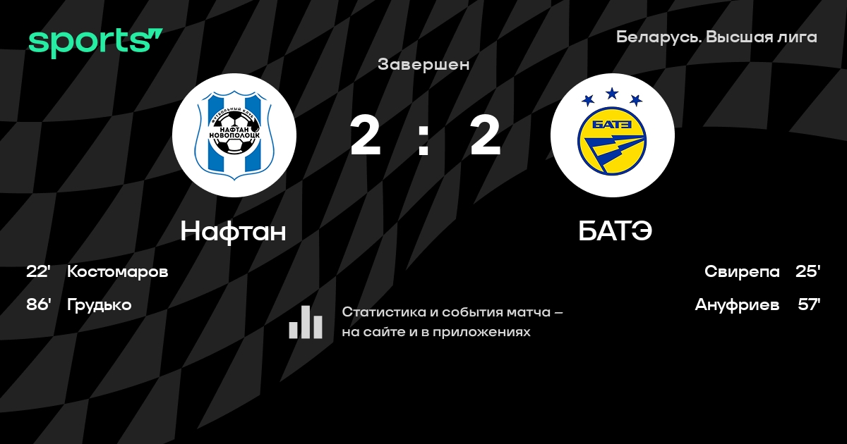 Нафтан – БАТЭ – прогноз на матч 29 июня 2025 года