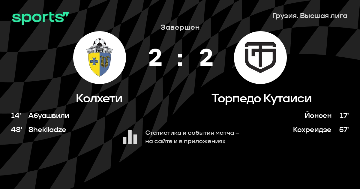 Колхети – Торпедо Кутаиси: Торпедо Кутаиси забивает в 6 последних матчах против этого соперника