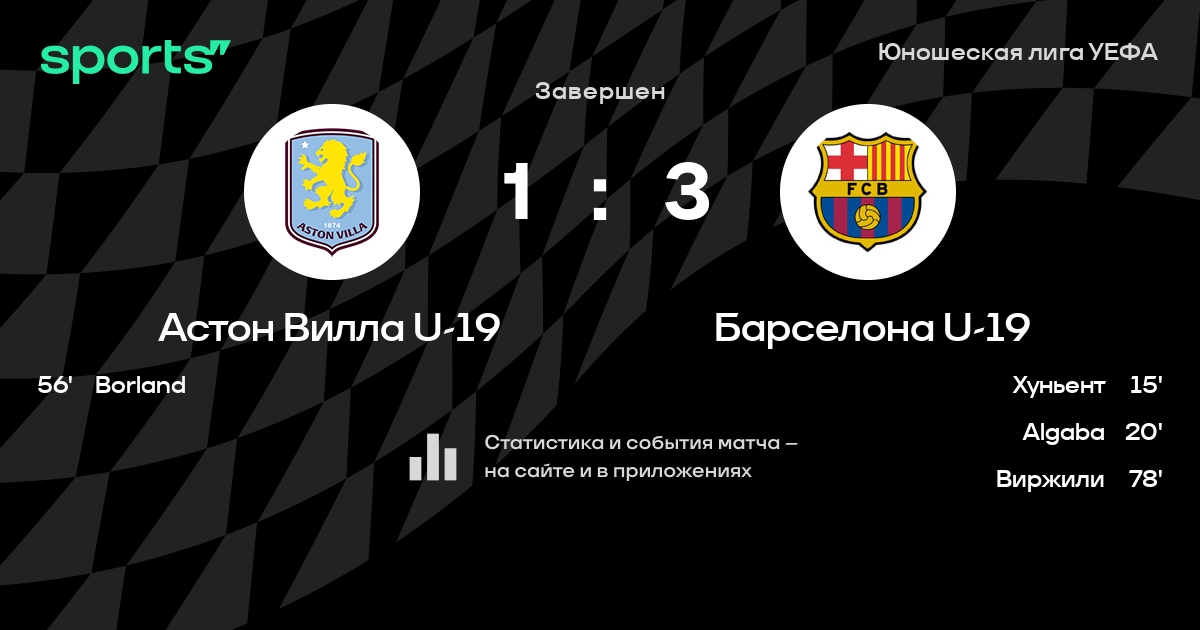 Трансляция Астон Вилла U-19 - Барселона U-19