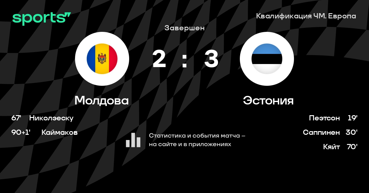 Молдова – Эстония: Эстония не пропускает в 4 последних матчах против этого соперника