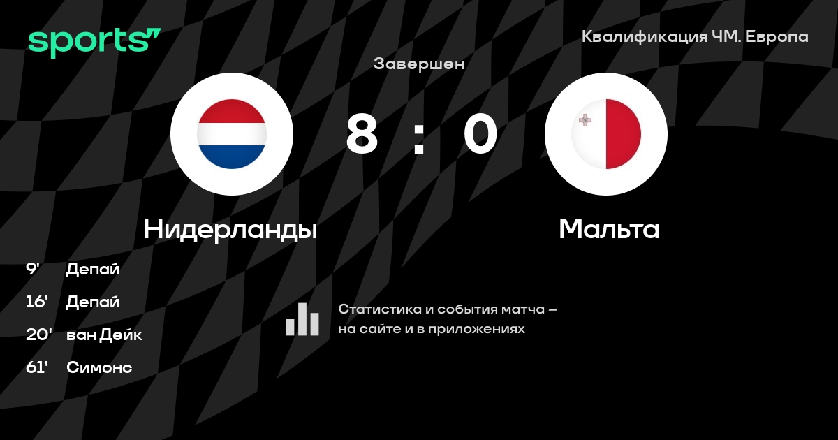 Нидерланды – Мальта: Нидерланды побеждает в 6 последних очных матчах