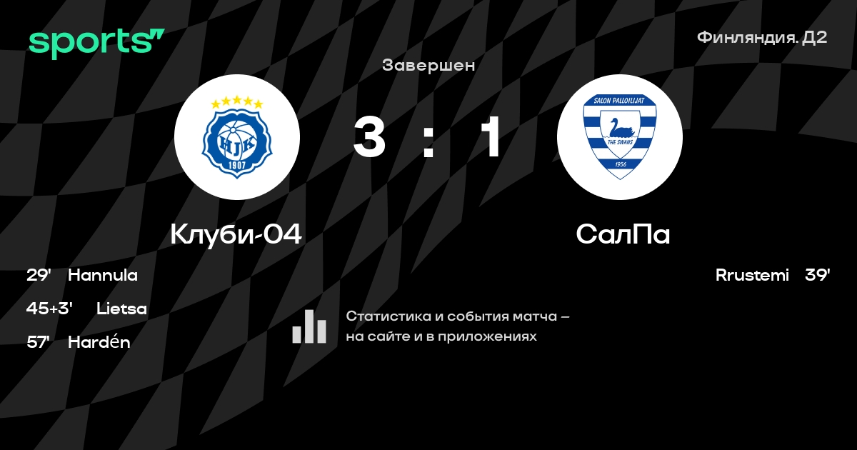 Клуби-04 – СалПа: Клуби-04 забивает в 6 из 8 последних матчей против этого соперника