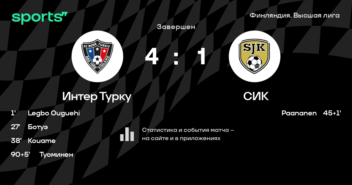 Интер Турку – СИК: Интер Турку забивает в 15 последних матчах против этого соперника