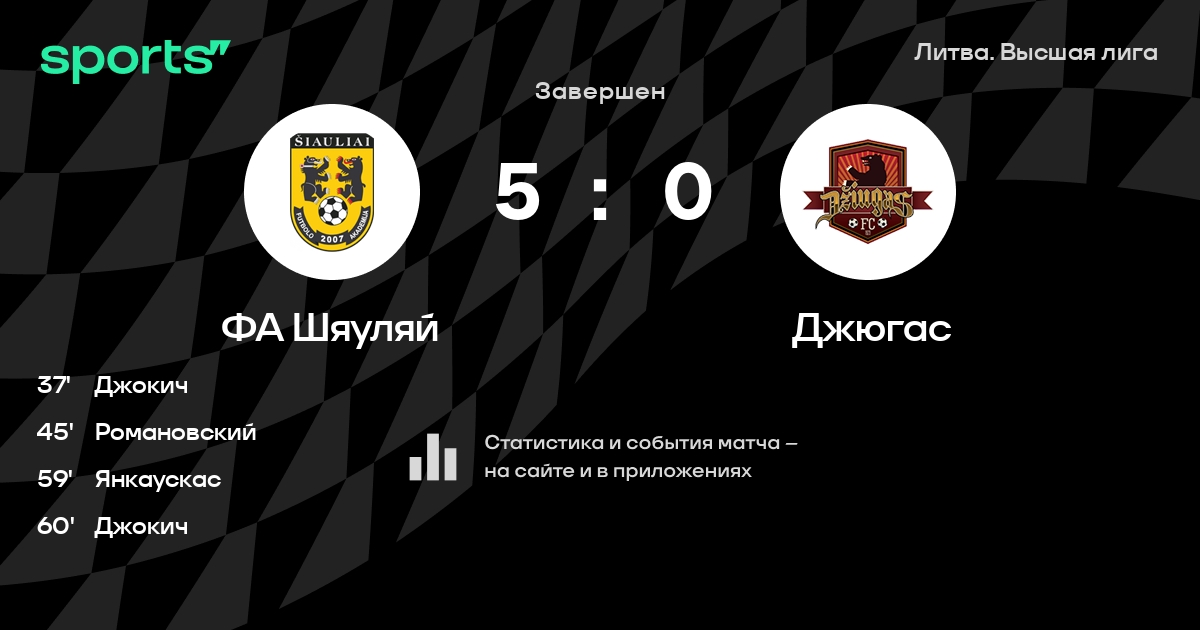 ФА Шяуляй – Джюгас: Джюгас забивает в 6 из 8 последних матчей против этого соперника