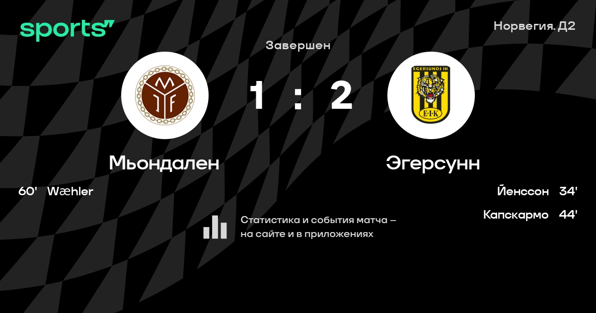 Результат прошлой игры в турнире «Первый дивизион»: Рауфосс – Мьондален 0:1. После 29 туров Мьондален набирает 25 очков и занимает 15 место в турнире. Лучший бомбардир команды – J. Bruusgaard: он забил 6 в 29 матчах. Мьондален не проигрывает в 3 последних матчах в рамках турнира «Первый дивизион». В 3 последних матчах в турнире «Первый дивизион» Мьондален обязательно забивает. В последних 5 играх Мьондален забивает 5 голов. В последних 5 играх Мьондален пропускает 12 голов.