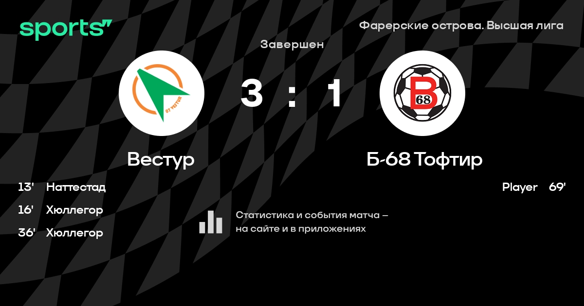 Вестур – Б-68 Тофтир: Б-68 Тофтир забивает в 6 из 8 последних матчей против этого соперника