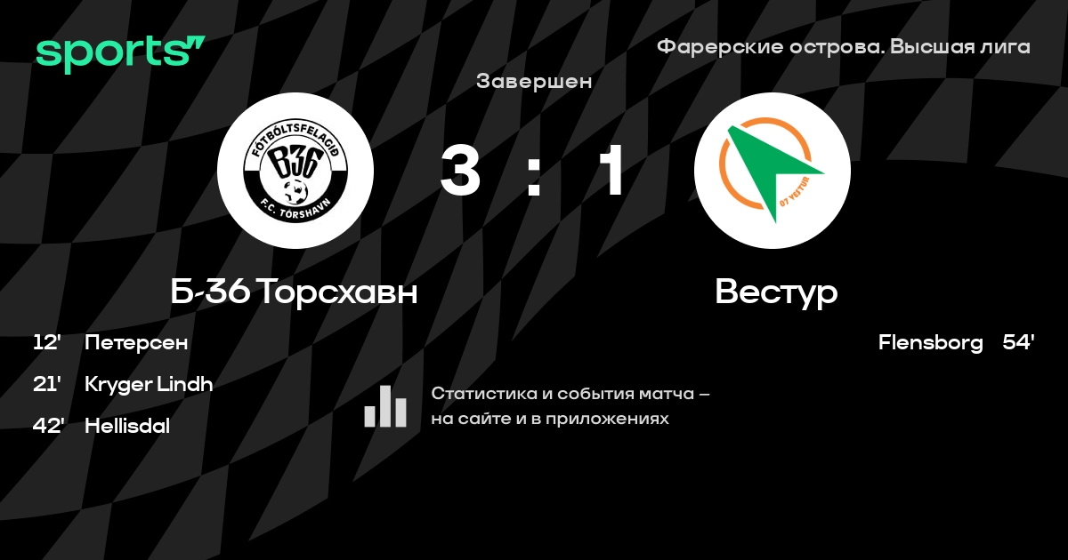 Результат прошлой игры в турнире «Высшая лига»: КИ Клаксвик – Б-36 Торсхавн 2:1. После 14 туров Б-36 Торсхавн набирает 21 очков и занимает 5 место в турнире. Лучший бомбардир команды – Петур Петерсен: он забил 6 в 15 матчах. В 3 последних матчах в турнире «Высшая лига» Б-36 Торсхавн обязательно забивает. Б-36 Торсхавн пропускает в 3 последних матчах в турнире «Высшая лига». В последних 5 играх Б-36 Торсхавн забивает 7 голов. В последних 5 играх Б-36 Торсхавн пропускает 8 голов.