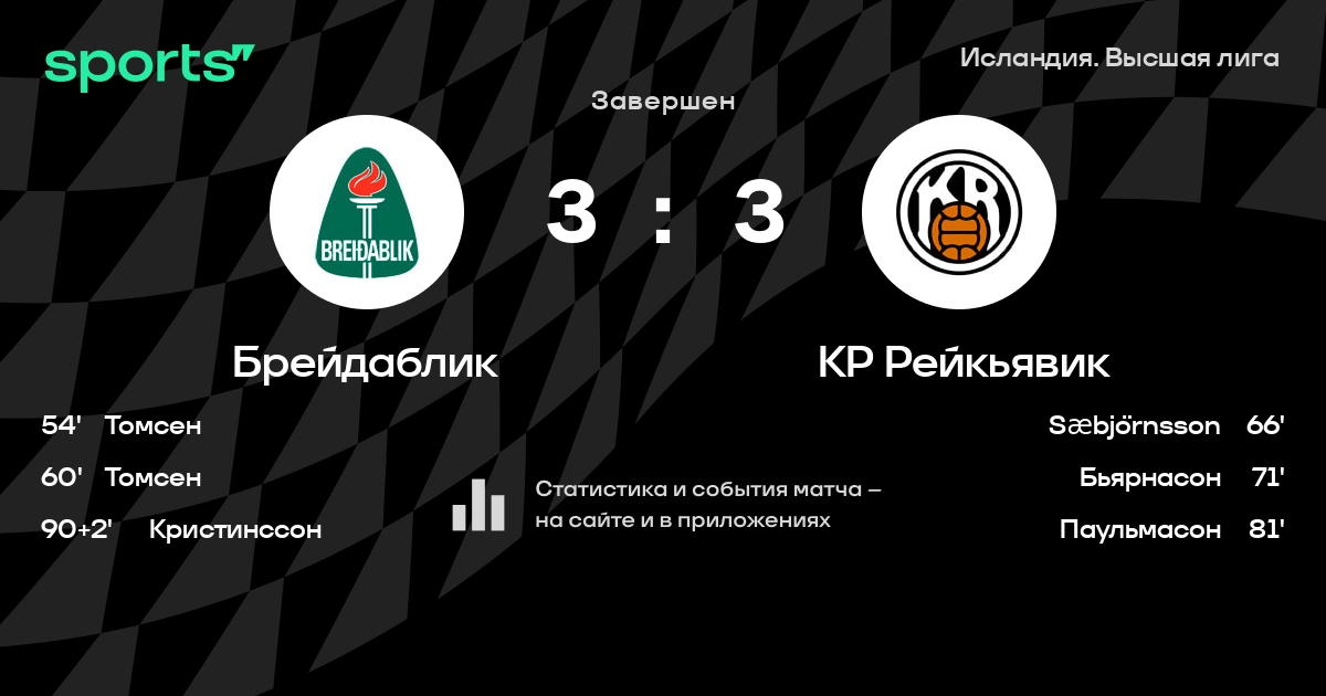Брейдаблик – КР Рейкьявик: КР Рейкьявик забивает в 4 последних матчах против этого соперника