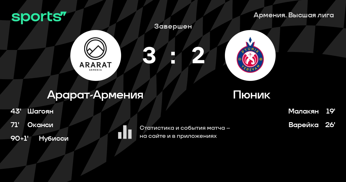 Арарат-Армения – Пюник: Пюник забивает в 3 последних матчах против этого соперника