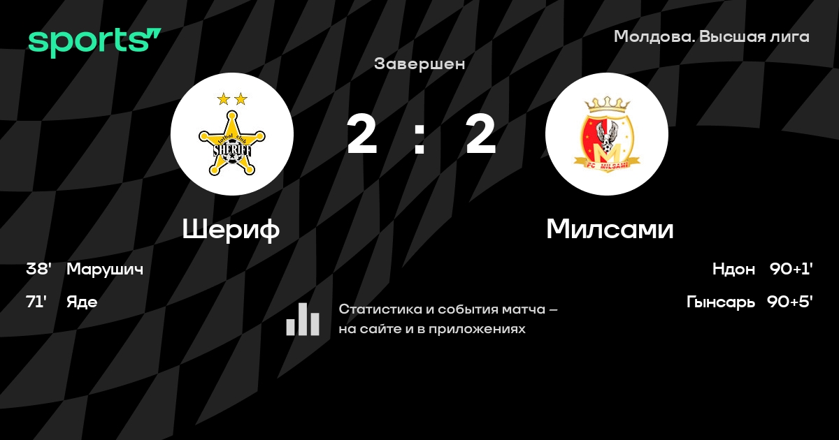 Шериф – Милсами: Шериф забивает в 3 последних матчах против этого соперника