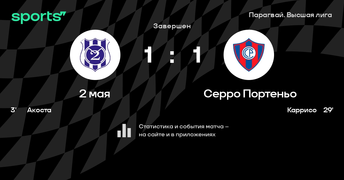 2 мая – Серро Портеньо: Серро Портеньо не проигрывает в 8 из 10 последних матчей против этого соперника