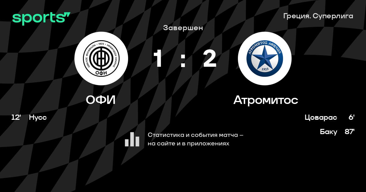 ОФИ – Атромитос: Атромитос не проигрывает в 6 последних матчах против этого соперника