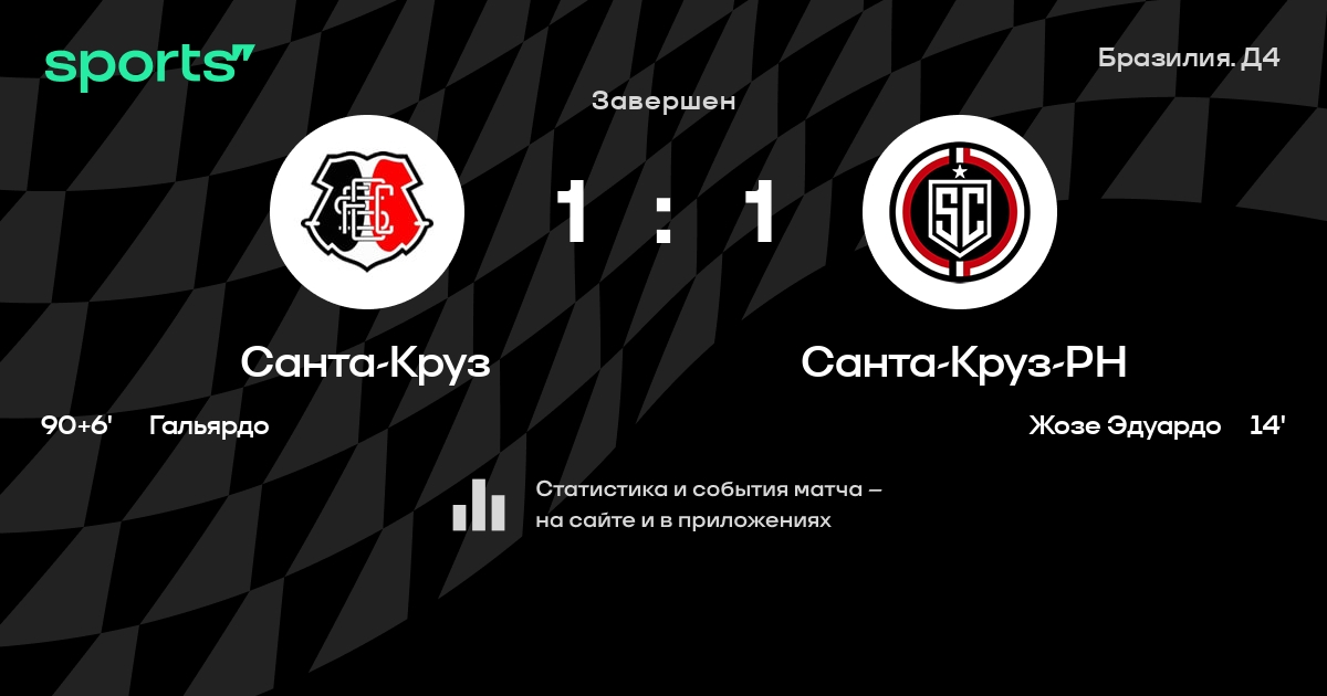 Результат прошлой игры в турнире «Серия D»: Америка Натал – Санта-Круз 0:0. После 11 туров Санта-Круз набирает 23 очков и занимает 1 место в турнире. Лучший бомбардир команды – Тиагиньо: он забил 9 в 22 матчах. В последних 5 играх Санта-Круз забивает 6 голов. В последних 5 играх Санта-Круз пропускает 5 голов.