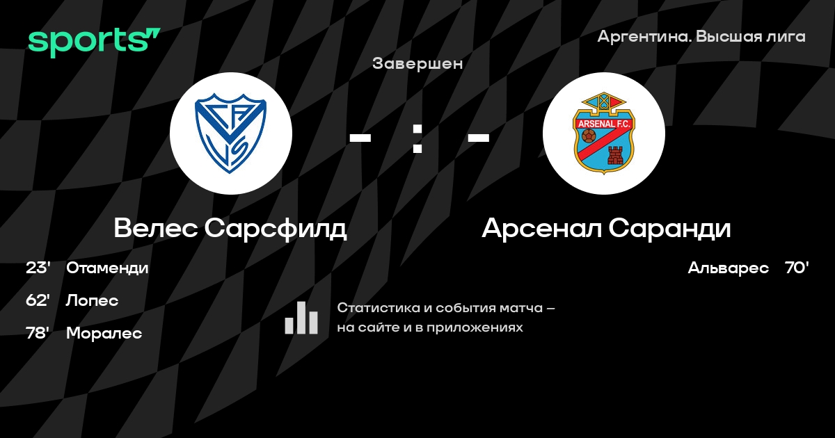 Трансляция Велес Сарсфилд - Арсенал Саранди