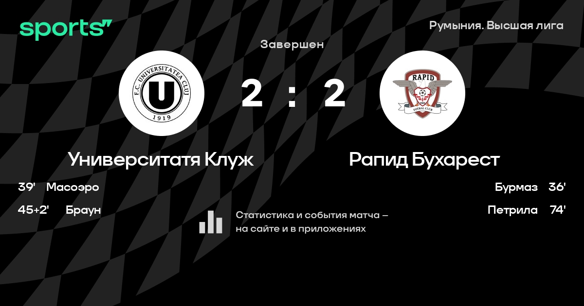 Университатя Клуж – Рапид Бухарест: Университатя Клуж побеждает в 4 последних очных матчах
