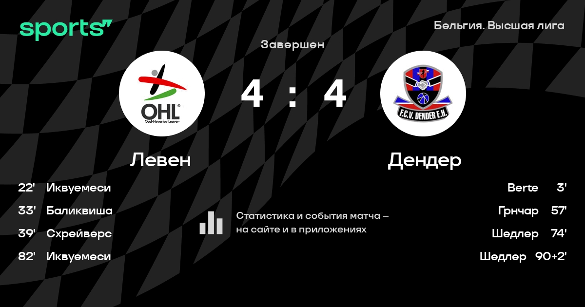 Левен – Дендер: Левен не проигрывает в 5 последних матчах против этого соперника