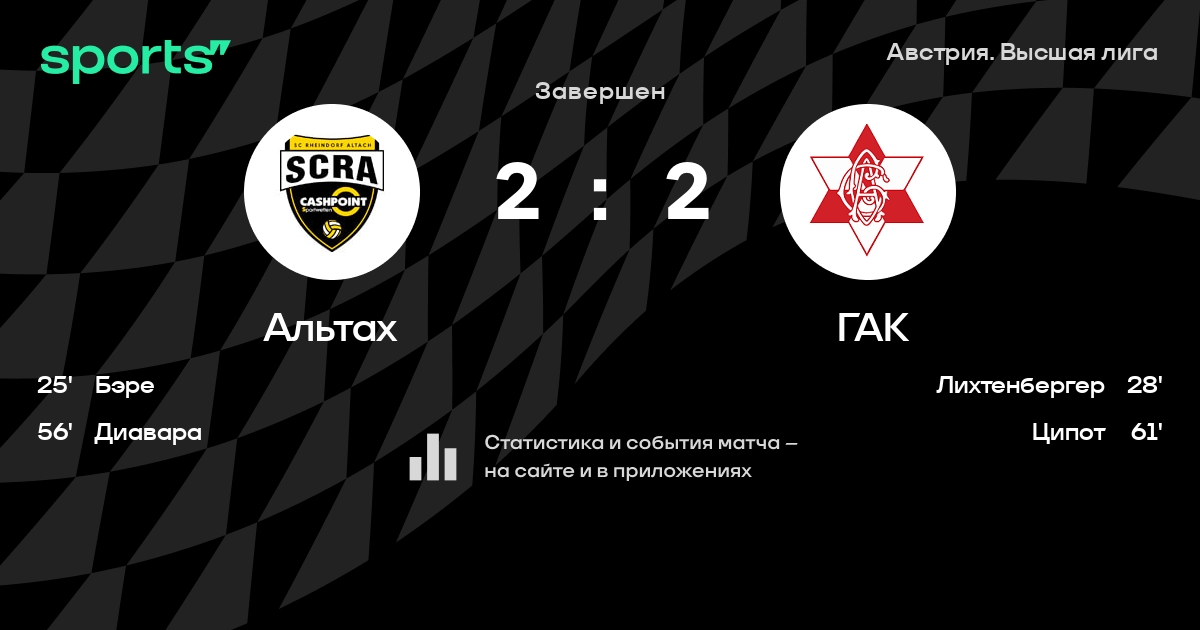 Альтах – ГАК: ГАК забивает в 8 последних матчах против этого соперника