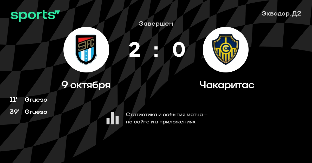 9 октября – Чакаритас: Чакаритас забивает в 3 последних матчах против этого соперника