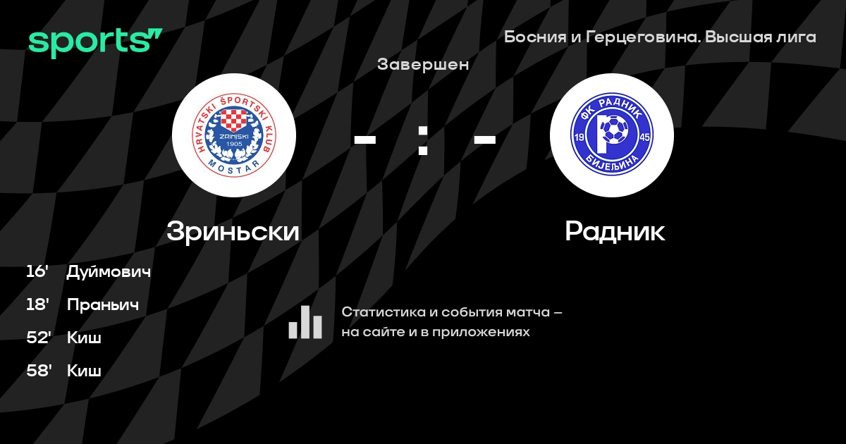 Зриньски – Радник: Зриньски забивает в 5 из 7 последних матчей против этого соперника