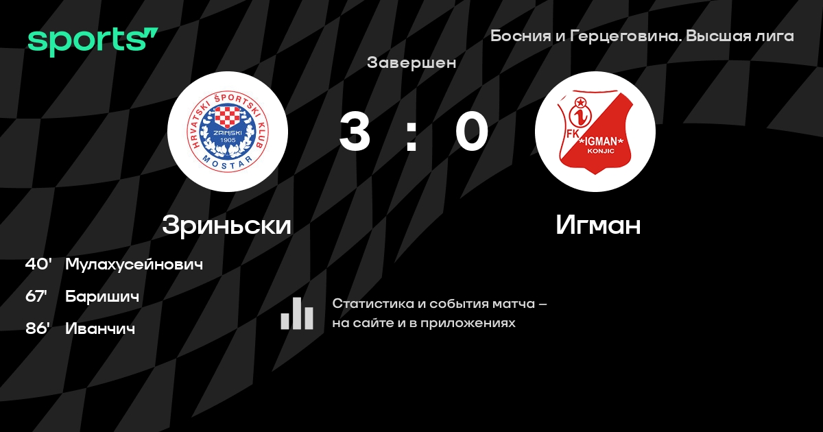 Зриньски – Игман: Зриньски забивает в 9 последних матчах против этого соперника