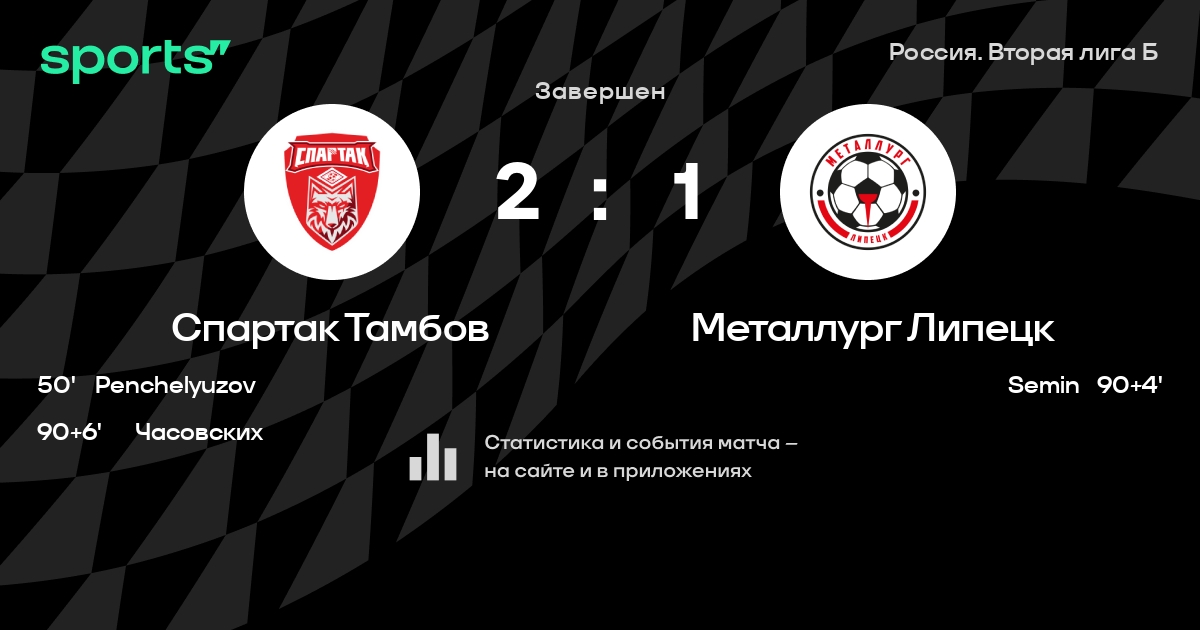 Трансляция Спартак Тамбов - Металлург Липецк