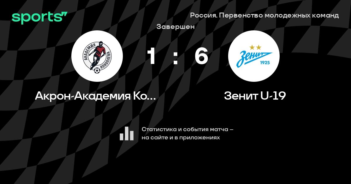 Акрон-Академия Коноплева U-19 – Зенит U-19: Зенит U-19 забивает в 5 последних матчах против этого соперника
