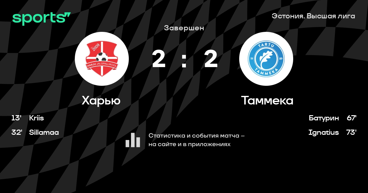 Харью – Таммека: Таммека забивает в 4 последних матчах против этого соперника